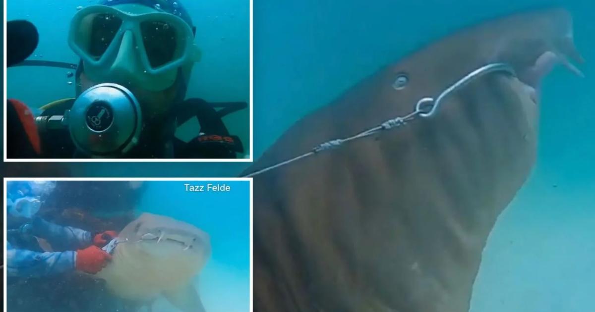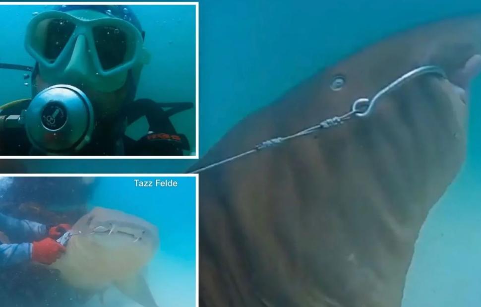 Ένας γενναίος δύτης από τη Φλόριντα απελευθέρωσε έναν καρχαρία. Ο καρχαρίας είχε έναν μεγάλο γάντζο στο στόμα του και είχε παγιδευτεί σε μια πετονιά σε έναν τεχνητό ύφαλο, όπως δείχνει βίντεο με την τολμηρή διάσωση.