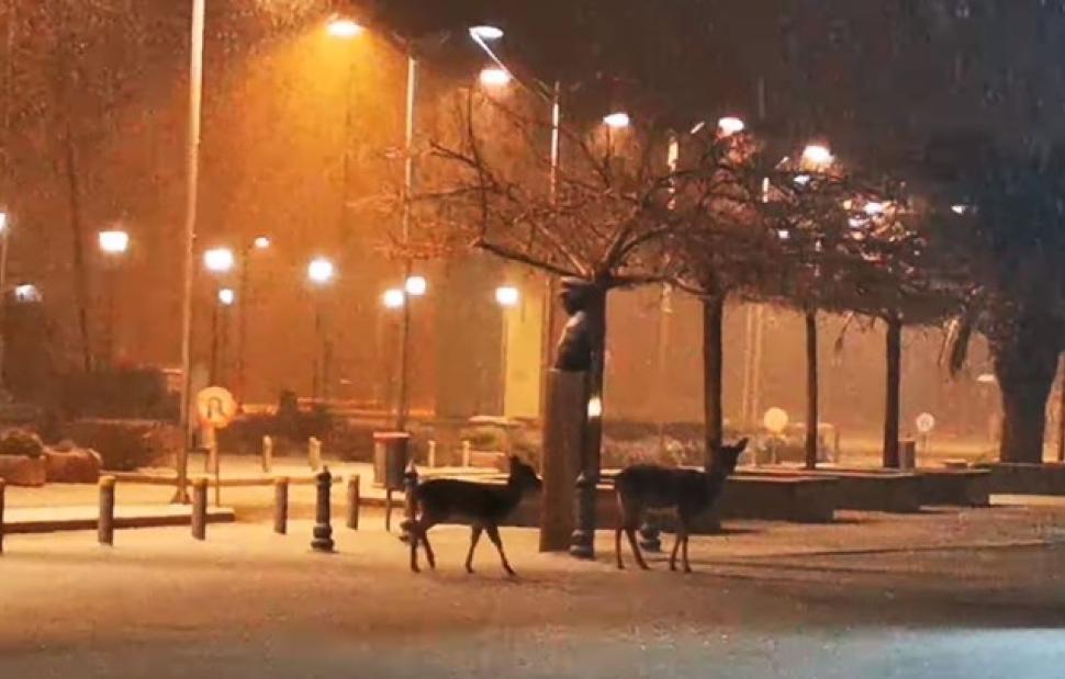 Στο κέντρο της Λήμνου, λόγω του χιονιά έφτασαν και απρόσμενοι επισκέπτες. Αναζητώντας καταφύγιο από την πυκνή χιονόπτωση, δύο ελαφάκια, κατέβηκαν και έκαναν βόλτες κοντά στο δημαρχείο του νησιού.
