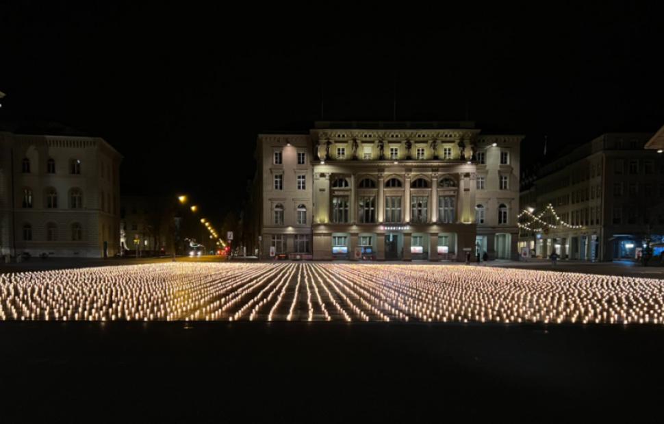Κάπου 40 εθελοντές άναψαν τα κεριά, τοποθετημένα στην πλατεία μπροστά στην ελβετική Βουλή - H χειρονομία αποτελούσε έκκληση προς τις αρχές να λάβουν πιο αποτελεσματικά μέτρα για να περιοριστεί η ραγδαία αύξηση των μολύνσεων.