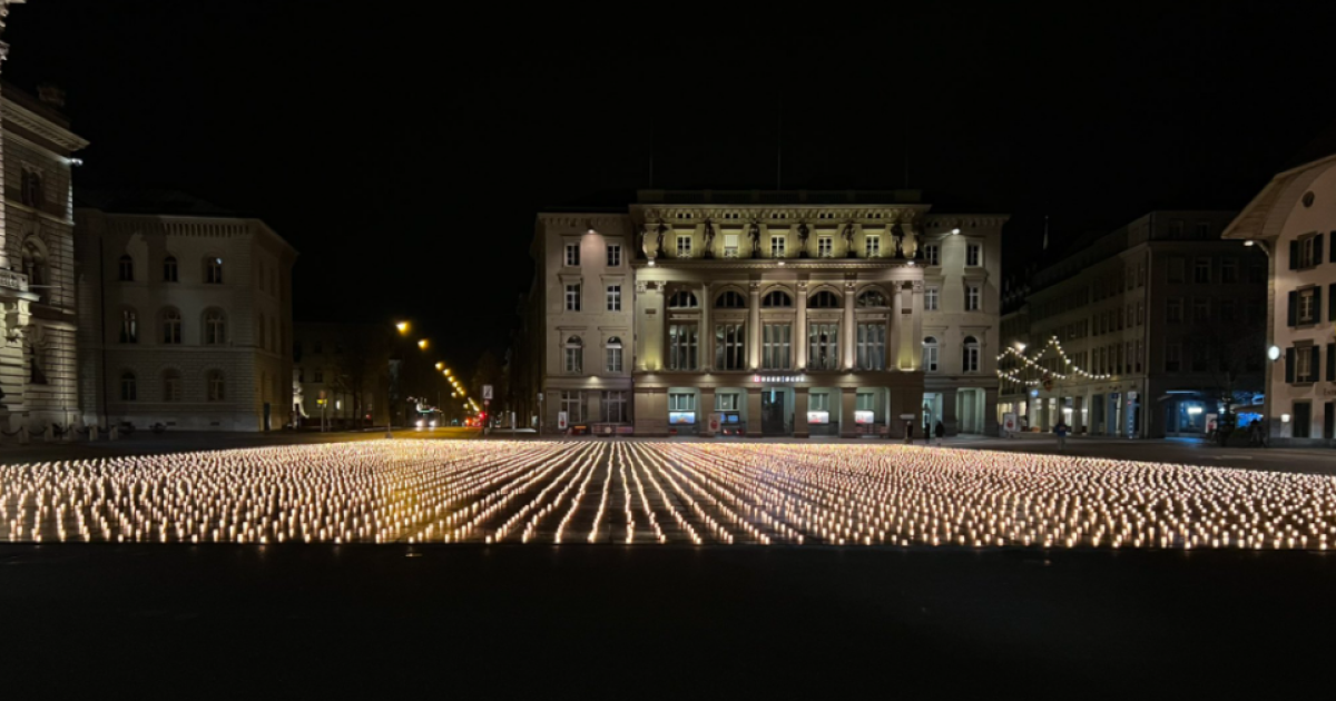 Κάπου 40 εθελοντές άναψαν τα κεριά, τοποθετημένα στην πλατεία μπροστά στην ελβετική Βουλή.