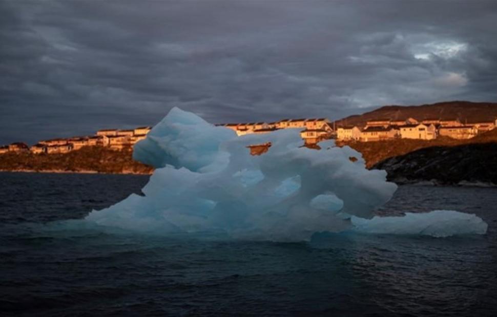 Παγόβουνο διακρίνεται να διέρχεται από το Νούουκ της Γροιλανδίας. Το Νούουκ είναι η πρωτεύουσα και μεγαλύτερη πόλη της αυτοκυβερνώμενης δανέζικης περιοχής.