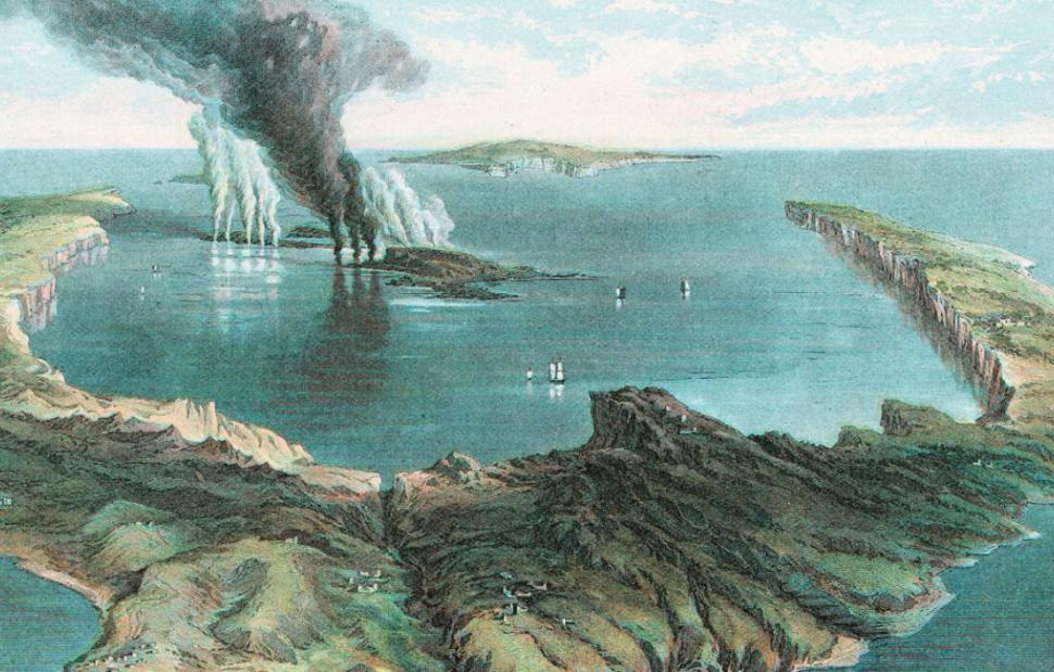 Η ηφαιστειακή τέφρα βρέθηκε ακόμη και στην άλλη άκρη του πλανήτη την Ανταρκτική και σε χώρες της Ασίας. Από αυτή την έκρηξη το μεγαλύτερο τμήμα του νησιού τινάχτηκε στον αέρα και δημιουργήθηκε η καλντέρα... αυτό το χάσμα νερού ανάμεσα στα νησάκια που από την τεράστια πίεση έφτασε τα 1500 μέτρα βάθος.