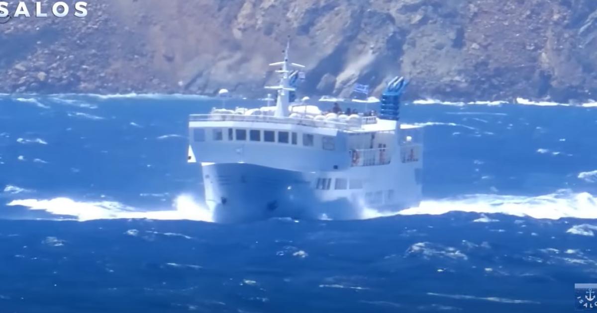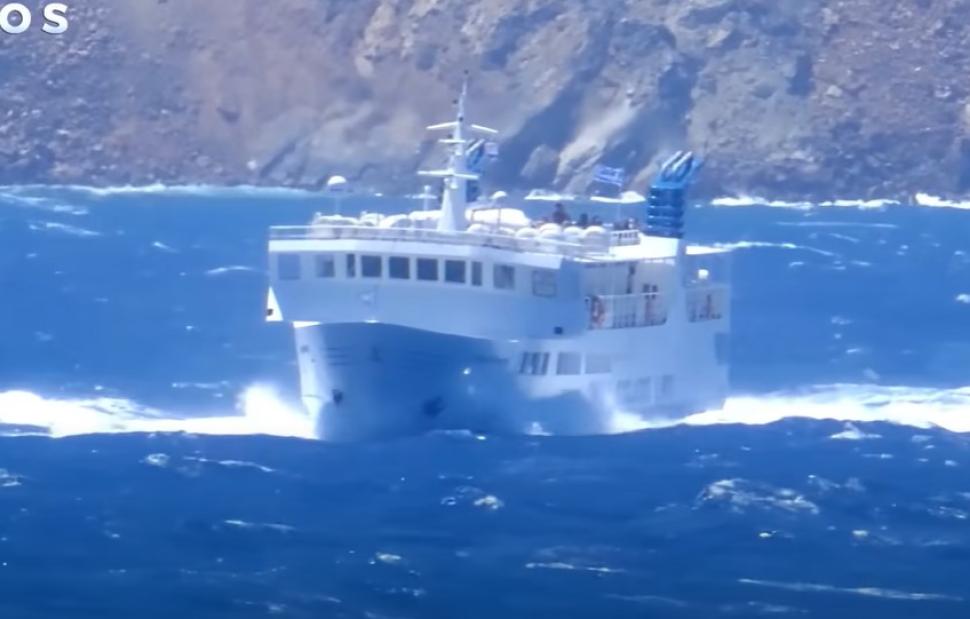 Εντυπωσιακές εικόνες κατέγραψε η κάμερα και δείχνουν τον «Σκοπελίτη» να πλέει εν μέσω φουρτούνας έξω από τη Νάξο.