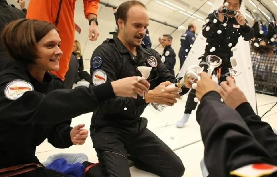 Στο πλαίσιο αυτό η γαλλική εταιρεία πώλησης σαμπάνιας GH Mumm σε συνεργασία με τη διαστημική υπηρεσία της Γαλλίας ξεκίνησε μια προσπάθεια δημιουργίας μιας σαμπάνιας που θα μπορεί να καταναλωθεί σε συνθήκες μηδενικής βαρύτητας.