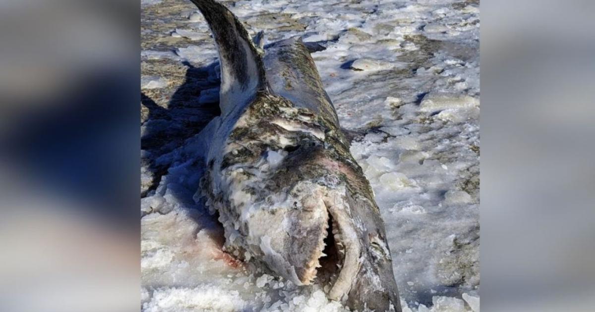 Ένας νεκρός και παγωμένος καρχαρίας ξεβράστηκε στην παγωμένη παραλία στο Κέιπ Κοντ της Μασαχουσέτης στις ΗΠΑ το περασμένο Σαββατοκύριακο.
