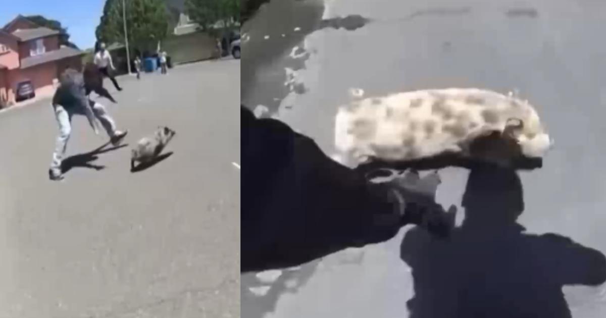 Υλικό από κάμερα σώματος που έδωσε στη δημοσιότητα το αστυνομικό τμήμα της Σεβαστούπολης στην Καλιφόρνια δείχνει το γουρουνάκι «Pickles» να οδηγεί τους αστυνομικούς σε ένα άγριο κυνηγητό στους δρόμους της πόλης, την Πέμπτη (13 Ιουνίου).