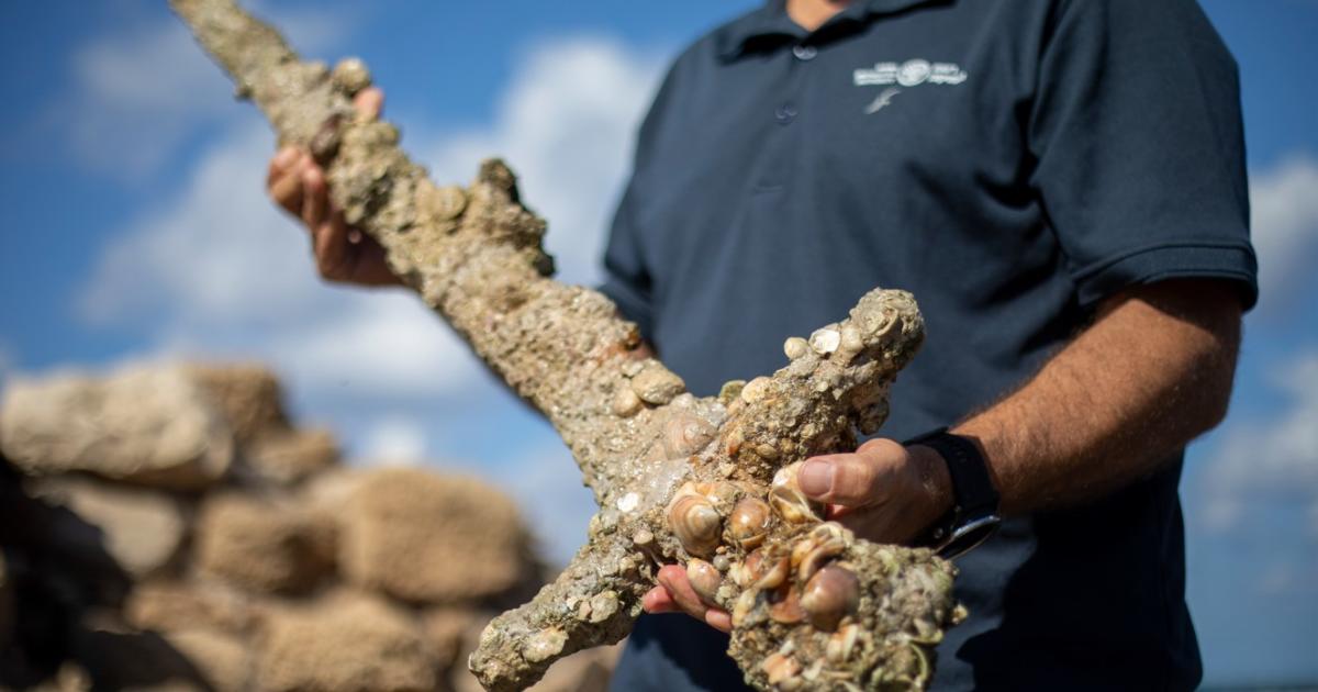 Αρχαίο σπαθί βρέθηκε στα ανοικτά ακτών του Ισραήλ. Το σπαθί ήταν γεμάτο με κοχύλια και έχει μήκος ένα μέτρο. Το ξίφος φαίνεται άθικτο ακόμη και μετά από περίπου 1.000 χρόνια, εξηγεί ο Κόμπι Σάρβιτ, ο οποίος διευθύνει τη θαλάσσια αρχαιολογική μονάδα της Αρχής Αρχαιοτήτων του Ισραήλ.