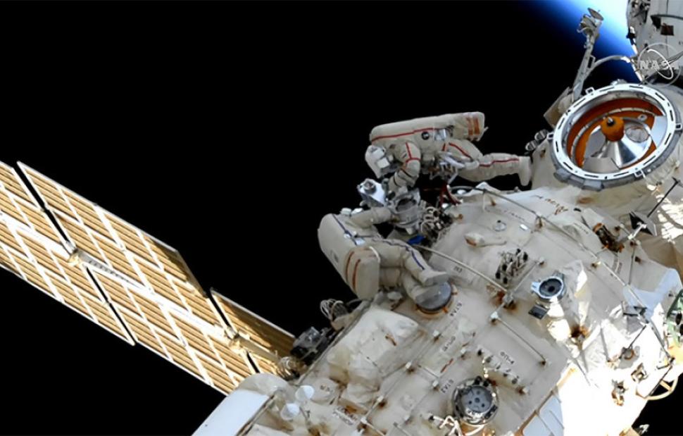 Δύο Ρώσοι κοσμοναύτες πραγματοποίησαν τον πρώτο από τους δύο διαστημικούς περιπάτους τους για να ενεργοποιήσουν τον νέο μήκους 11,3 μέτρων ευρωπαϊκό ρομποτικό βραχίονα που θα εξυπηρετεί τον Διεθνή Διαστημικό Σταθμό (ISS).