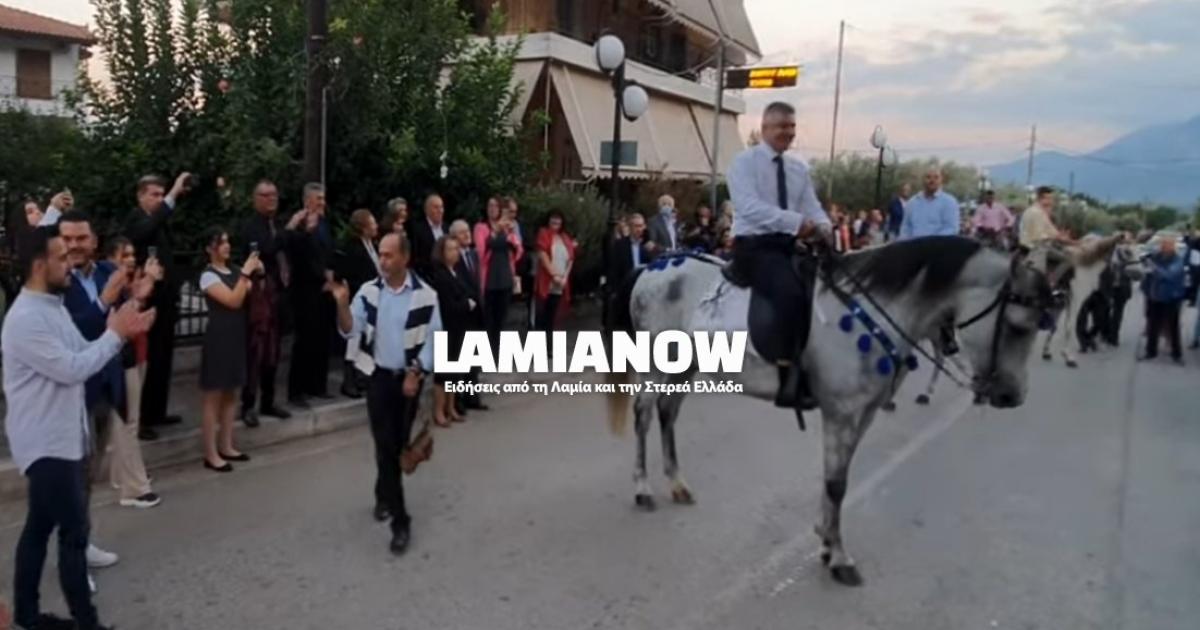 Ένας παραδοσιακός γάμος έγινε στη Λαμία το Σάββατο. Ο γαμπρός ξεκίνησε από το σπίτι του καβαλάρης και έφτασε στην εκκλησία στον Γοργοπόταμο, με τη συνοδεία παραδοσιακής ορχήστρας. Συγγενείς και φίλοι που τον ακολουθούσαν κάθε τόσο ξεσπούσαν σε χειροκροτήματα, σύμφωνα με το lamianow.gr.