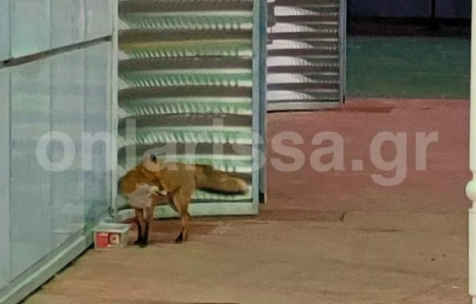 Μία αλεπού αντίκρυσαν περαστικοί και πελάτες έξω από σούπερ μάρκετ στη Γιάννουλη, λίγο έξω από τη Λάρισα την Τρίτη.