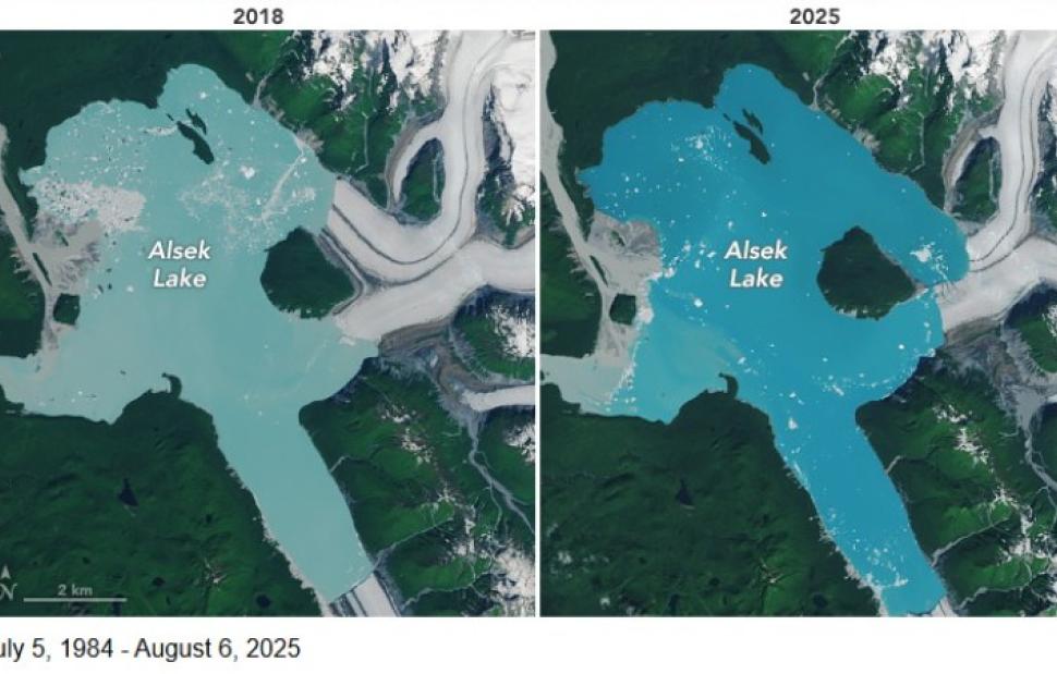 Όπως ανέφερε ο μετεωρολόγος Θοδωρής Κολυδάς, η εξέλιξη αυτή αποτυπώνεται καθαρά στις δορυφορικές εικόνες του Landsat. Η πρώτη λήψη προέρχεται από το θερινό εξάμηνο του 1984 (Landsat 5/TM), ενώ η πιο πρόσφατη από το καλοκαίρι του 2025 (Landsat 9/OLI-2). Η σύγκριση δείχνει το μέγεθος της παγοκάλυψης που χάθηκε, αλλά και τη ραγδαία εξάπλωση της λίμνης.