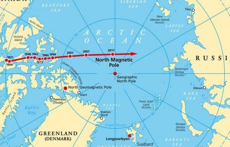 Οι επιστήμονες γνωρίζουν ότι ο μαγνητικός Βόρειος Πόλος κινούνταν κατά μήκος της βόρειας καναδικής ακτής για αιώνες. «Όμως ο μαγνητικός Βόρεος Πόλος άρχισε να μετακινείται προοδευτικά στον Αρκτικό Ωκεανό τη δεκαετία του 1990, και μετά από αυτό, επιτάχυνε και κατευθύνθηκε προς τη Σιβηρία.