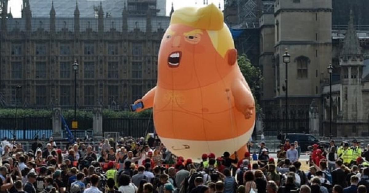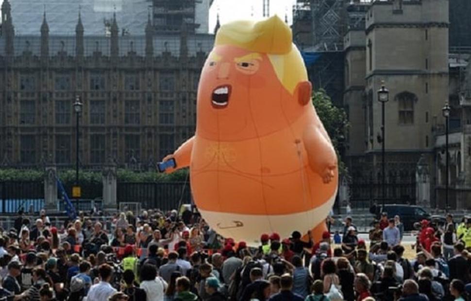 Το μπαλόνι αυτό έκανε την εμφάνισή του ενόψει της πρώτης επίσημης επίσκεψης του Ντόναλντ Τραμπ στη Βρετανία και έκτοτε το έφερναν σε διαδηλώσεις, όπου έγινε έμβλημα διαμαρτυρίας κατά της πολιτικής του 45ου Προέδρου των ΗΠΑ.