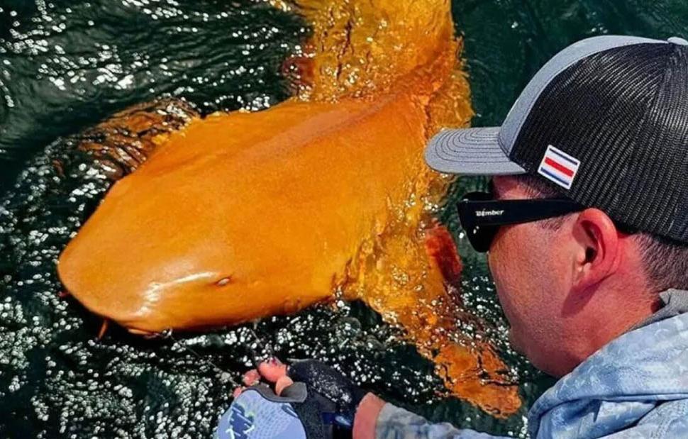 Ένας σπάνιος πορτοκαλί καρχαρίας, ο μόνος του είδους του που έχει βρεθεί μέχρι σήμερα, ανακαλύφθηκε κατά τη διάρκεια ενός αλιευτικού ταξιδιού στην περιοχή του Εθνικού Πάρκου Tortuguero στην Κόστα Ρίκα, προκαλώντας ενθουσιασμό στους επιστήμονες.