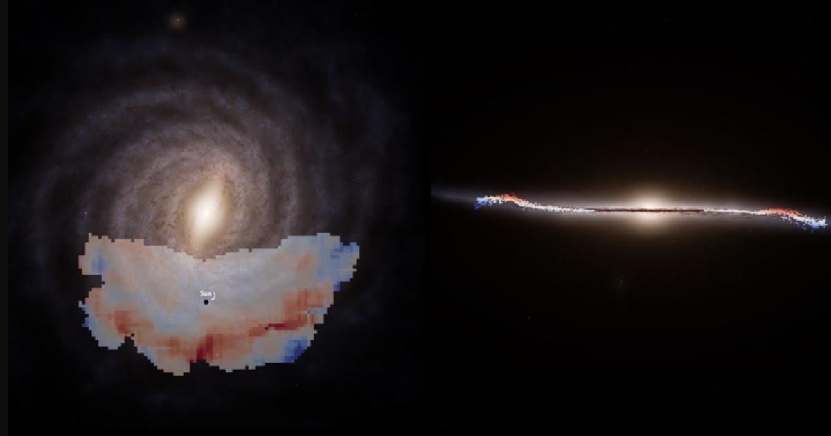 Το ίδιο τηλεσκόπιο ανακάλυψε ότι ο δίσκος του γαλαξία ταλαντεύεται με την πάροδο του χρόνου παρόμοια με την κίνηση μίας σβούρας.