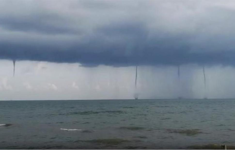 Οι τέσσερις χοάνες εμφανίστηκαν για λίγα λεπτά πάνω από το νησί Koh Mak προτού σταδιακά εξαφανιστούν και αντικαταστάθηκαν από βροχή και καταιγίδες.
