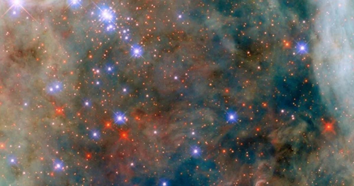 Στη νέα φωτογραφία του Hubble τα πολύχρωμα νέφη αερίων του νεφελώματος συγκρατούν τραχείς έλικες και σκουρόχρωμες συστάδες σκόνης. Αυτή η σκόνη είναι φυσικά εντελώς διαφορετική από τη συνηθισμένη οικιακή σκόνη, η οποία μπορεί να περιλαμβάνει κομμάτια χώματος, κύτταρα δέρματος, τρίχες, ακόμη και πλαστικό. Η κοσμική σκόνη συχνά αποτελείται από άνθρακα ή από μόρια που ονομάζονται πυριτικά, τα οποία περιέχουν πυρίτιο και οξυγόνο.