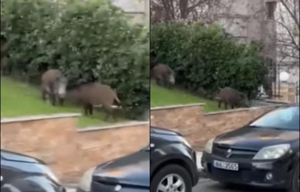 Αγριογούρουνα έκαναν την εμφάνισή τους στον Άγιο Ιωάννη Καλαμαριάς και στην περιοχή Χαριλάου, στη Θεσσαλονίκη.