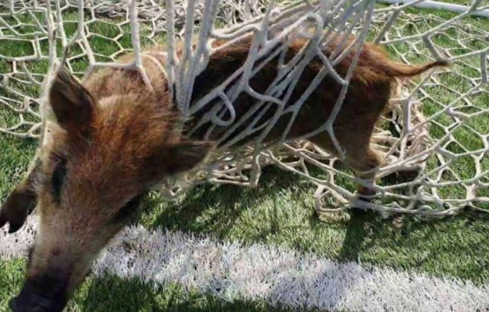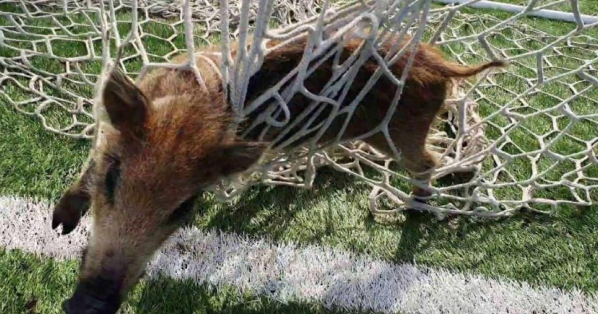 Ένα μικρό αγριογούρουνο φαίνεται να ξέφυγε από την αγέλη που κυκλοφορεί στη Θέρμη και βρέθηκε στις εγκαταστάσεις αθλητικής αγωγής του Αριστοτελείου Πανεπιστημίου Θεσσαλονίκης, στο γήπεδο της Σχολής Επιστημών Φυσικής Αγωγής και Αθλητισμού (ΤΕΦΑΑ), μεταξύ Θέρμης και Πυλαίας.