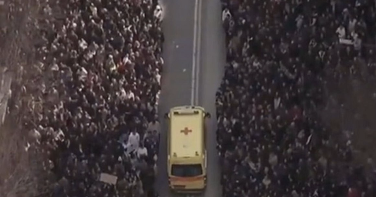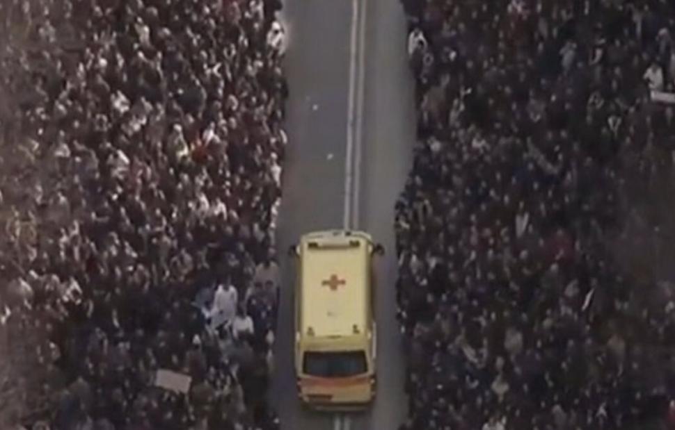 Μπορεί ο αριθμός των διαδηλωτών να ήταν τεράστιος, όμως αυτό δεν τους εμπόδισε να ενεργήσουν άμεσα και να ανοίξουν δρόμο για να περάσει το ασθενοφόρο του ΕΚΑΒ.