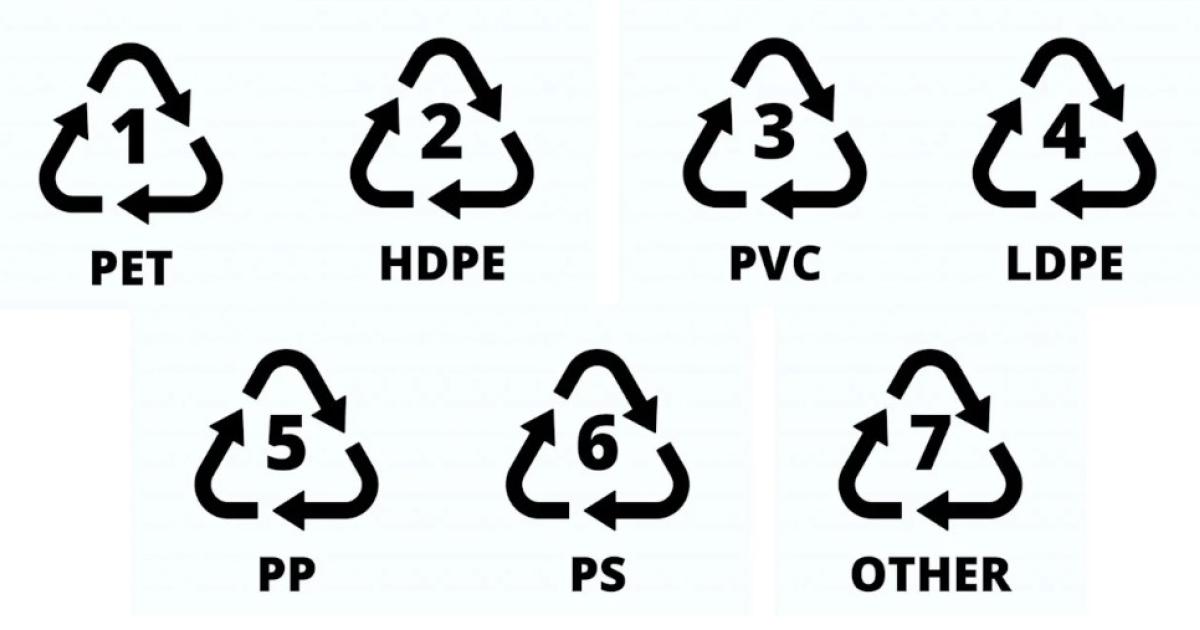 Κάθε πλαστικό σκεύος έχει έναν αριθμό από το 1 έως το 7 μέσα σε ένα τρίγωνο. Κάθε αριθμός αντιστοιχεί σε ένα συγκεκριμένο τύπο πλαστικού. Τα σύμβολα αυτά παρέχουν χρήσιμες πληροφορίες σχετικά με τις τοξικές χημικές ουσίες που μπορεί να απελευθερώσει το πλαστικό στο περιεχόμενό του, δηλαδή στα τρόφιμα ή τα ποτά.