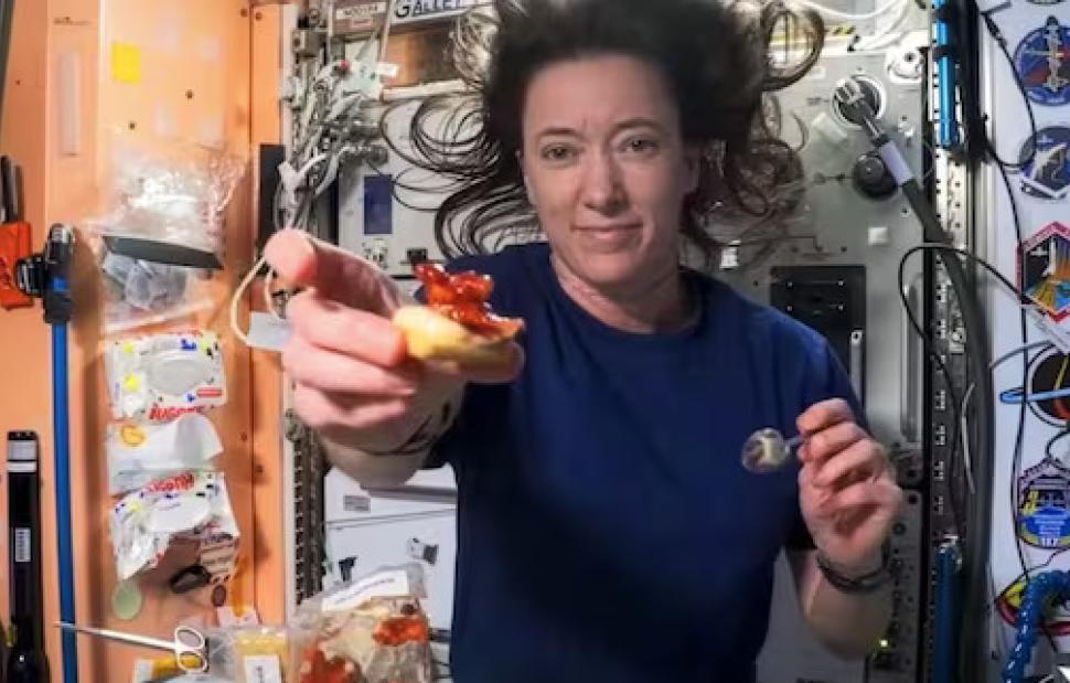 Ο Χάνσεν περιέγραψε τη συνάδελφό του ως «βετεράνο της διαστημικής τροφής», καθώς είχε περάσει πάνω από 300 ημέρες καταναλώνοντάς την σε προηγούμενες αποστολές. Οι αστροναύτες έδειξαν επίσης αφυδατωμένα πράσινα φασόλια και άλλες μερίδες προσαρμοσμένες στη μικροβαρύτητα, τονίζοντας ότι το μενού δεν περιοριζόταν σε άγευστους χυλούς ή φόρμουλες έκτακτης ανάγκης.