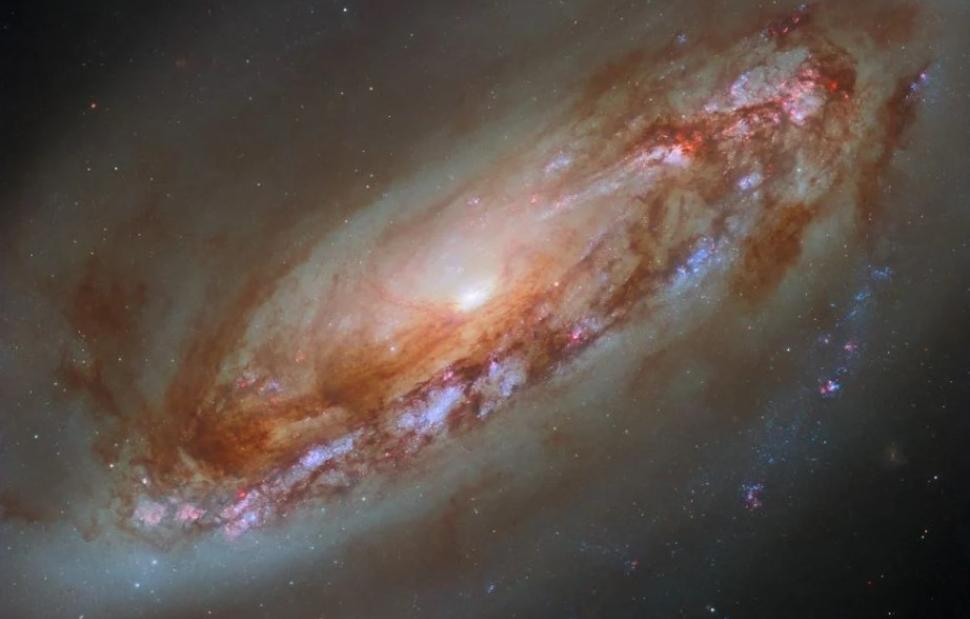 Οι εσωτερικές περιοχές του δίσκου του «Messier 90» είναι θέσεις σχηματισμού αστεριών, που φαίνονται στη νέα εικόνα με κόκκινο φως. Ο «Messier 90» βρίσκεται ανάμεσα στους γαλαξίες του σχετικά κοντινού σμήνος της Παρθένου και η τροχιά του οδήγησε τον Μ90 σε μια διαδρομή κοντά στο κέντρο του σμήνους πριν από περίπου τριακόσια εκατομμύρια χρόνια.