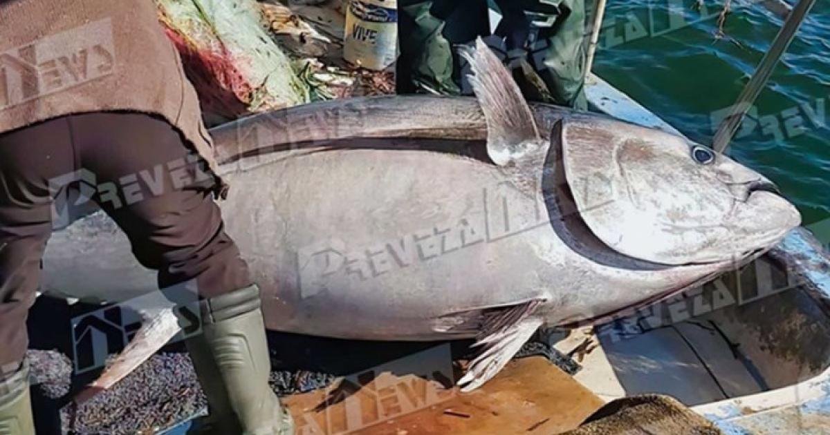 Πρόκειται για έναν τόνο (Thunnus) 130 κιλών, που αλιεύτηκε σε θαλάσσια περιοχή του Ιονίου, σύμφωνα με το prevezanews.