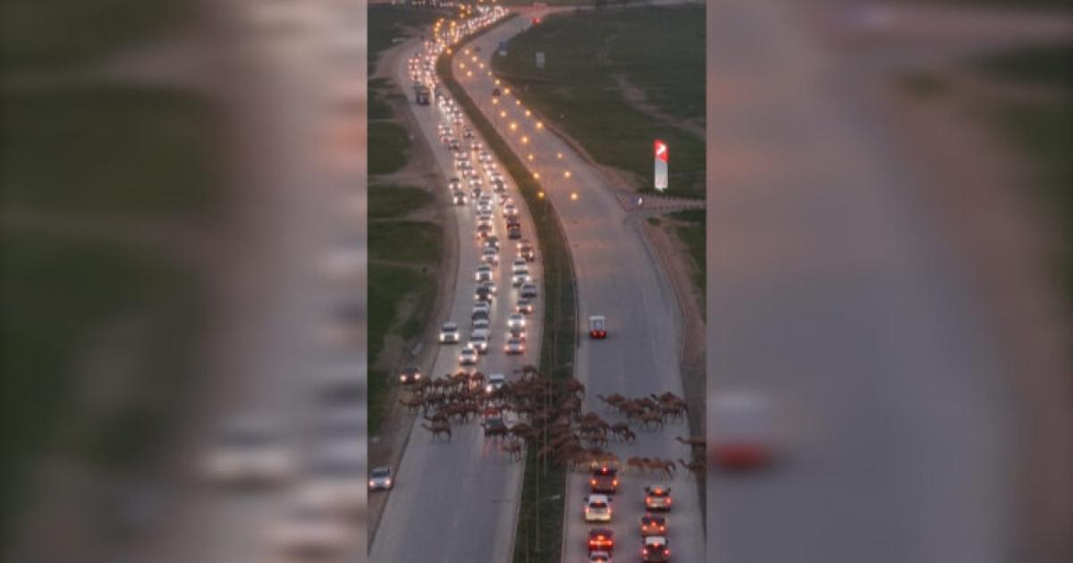 Εντυπωσιακό βίντεο που είδε το φως της δημοσιότητας δείχνει ένα κοπάδι καμήλες να διασχίζει έναν αυτοκινητόδρομο, σταματώντας την κυκλοφορία στο κυβερνείο Ντοφάρ του Ομάν.