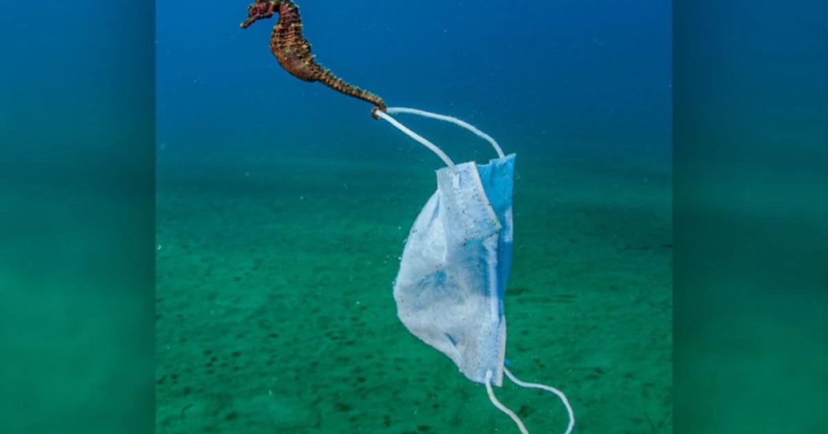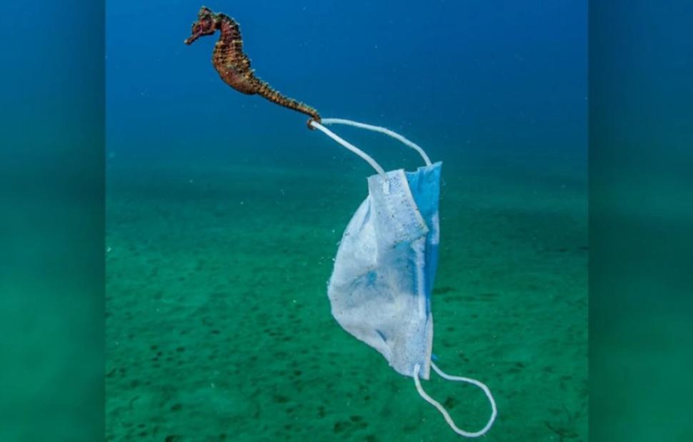 Ο Νικόλας Σαμαράς κατάφερε να καταγράψει με τον φακό του έναν ιππόκαμπο, στην ουρά του οποίου έχει «σκαλώσει» μία μάσκα προστασίας από τον κορωνοϊό.