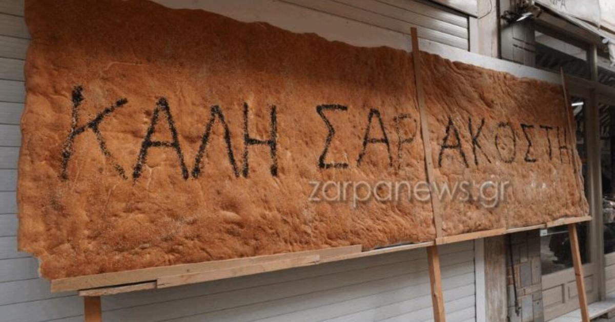 Η λαγάνα γίγας που ζυγίζει 70 κιλά παρασκευάστηκε με 50 κιλά αλεύρι και 28 κιλά νερό.