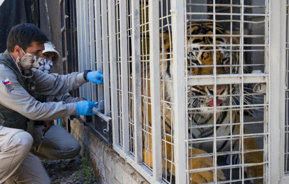 Ζώα που απειλούνται με εξαφάνιση εμβολιάζουν κατά του κορωνοϊού στη Χιλή. Ο Σαντάι ένας ουρακοτάγκος του Βόρνεο και μία τίγρης της Βεγγάλης είναι δύο είδη που απειλούνται με εξαφάνιση και έλαβαν χθες Δευτέρα τη δεύτερη δόση εμβολίου κατά του κορωνοϊού.