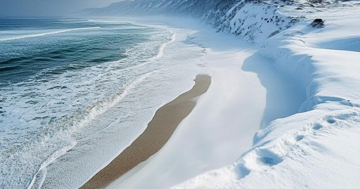 Εκτός από ανθισμένες κερασιές, απέραντους ορυζώνες και ηφαίστεια η Ιαπωνία έχει και χιονισμένες παραλίες. Η εντυπωσιακή αυτή φωτογραφία έχει τραβηχτεί στο γεωλογικό πάρκο San'in Kaigan, στο νησί Χοκκάιντο, το δεύτερο μεγαλύτερο της Ιαπωνίας, μετά τη νήσο Χονσού.