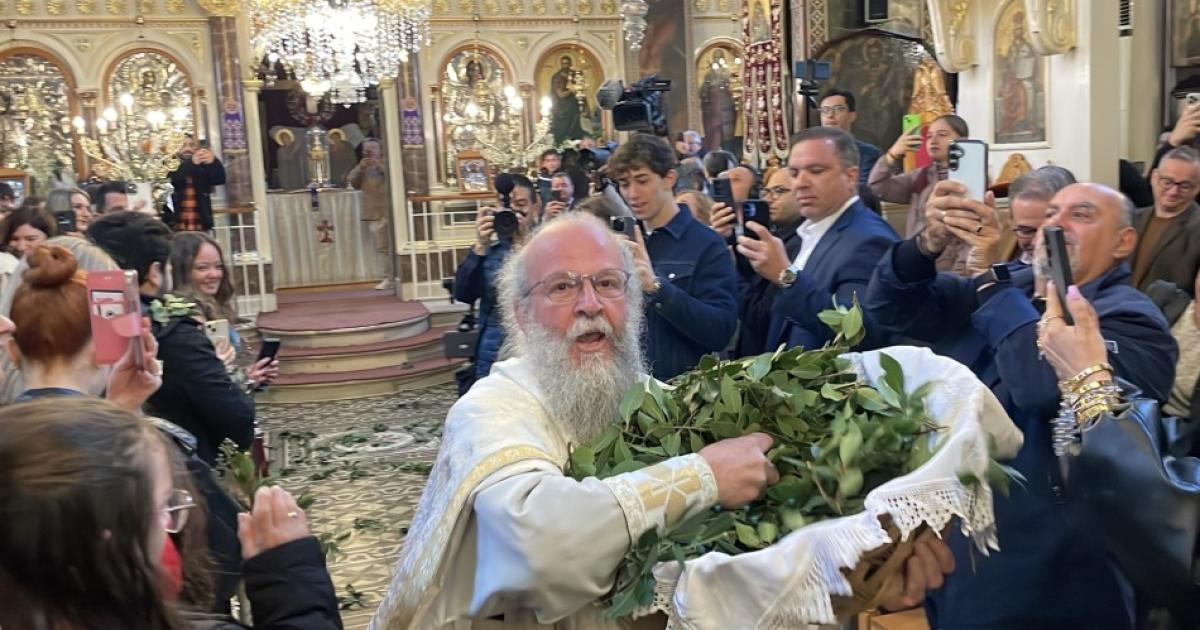 Σε ένα σκηνικό απόλυτης συμμετοχής και συμβολικής έντασης, ο ιερέας σκόρπισε δάφνες, σύμβολα της νίκης και της αιώνιας ζωής, σε ολόκληρο τον ναό. Οι εικόνες ήταν εντυπωσιακές: οι πολυέλαιοι κουνιούνταν σαν από σεισμό και η συγκίνηση κορυφώθηκε, με όλους τους παρευρισκόμενους να μετέχουν ενεργά στην τελετουργία.