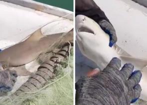 Ένας ψαράς έσωσε έναν μικρό καρχαρία από σίγουρο θάνατο. Ο μικρός κίτρινος καρχαρίας πιάστηκε στα δίχτυα του ψαρά, ανοιχτά των ακτών του Ιράν. Ο κίτρ...