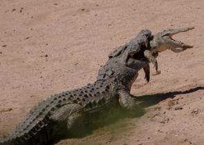 Τη στιγμή που ένα μεγάλος κροκόδειλος ετοιμάζεται να καταβροχθίσει έναν μικρότερο απαθανάτισε ο φωτογραφικός φακός. Συγκεκριμένα, ο Shutterbug Jan Bu...