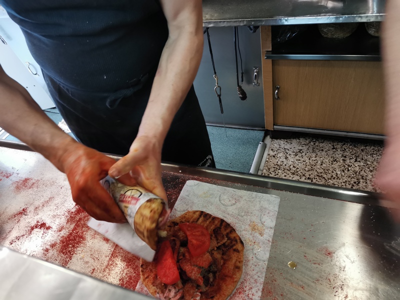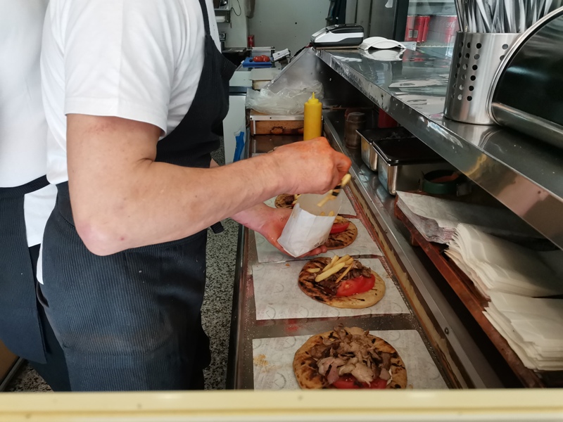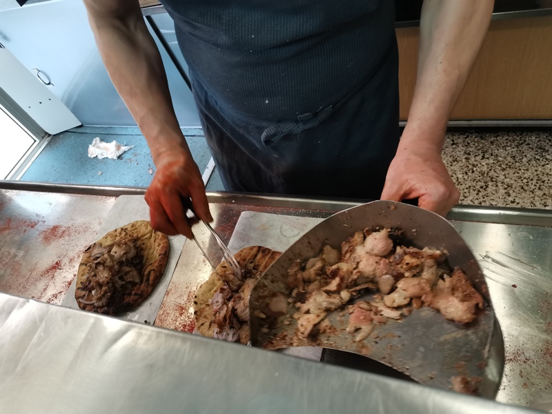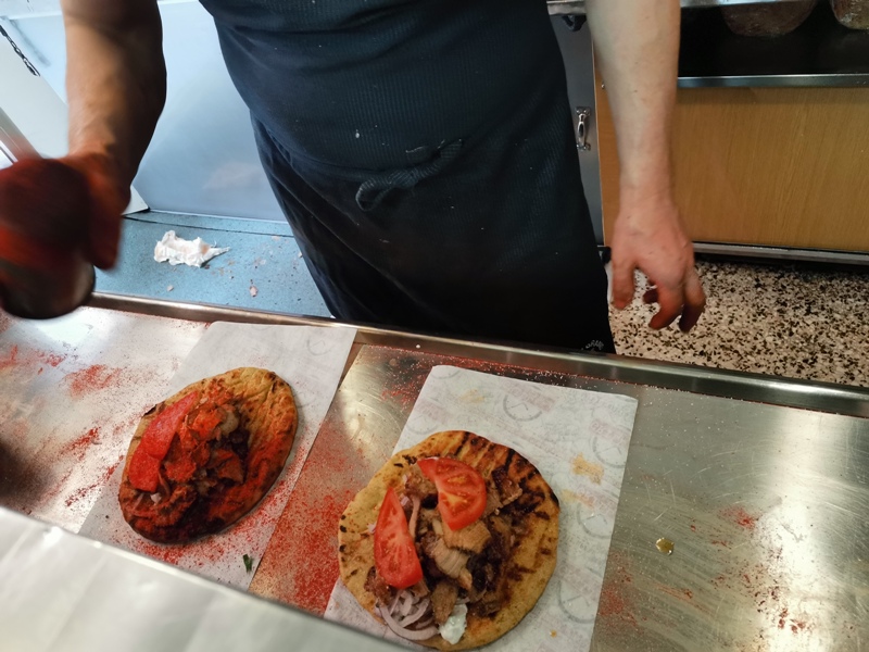 Ο γύρος φτιάχνεται στο χέρι, καθώς το χοιρινό κρέας ξεκοκαλίζεται και μαρινάρεται με τεσσάρων ειδών μπαχαρικά, το κρεμμύδι ανακατεύεται σε μαϊντανό, μαζί με πιπέρι και η πίτα ψήνεται τόσο όσο χρειάζεται για να τραβήξει το ζουμί. Όλα τα προϊόντα του Αχιλλέα είναι χειροποίητα, τίποτα δε φαίνεται να έχει αλλάξει τα 34 χρόνια που λειτουργεί το κατάστημα στον Νέο Κόσμο, αυτό το αποδεικνύουν οι πελάτες του κάθε ηλικίας.