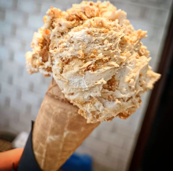 Μια από τις πελάτισσες ζήτησε παγωτό. Της επισήμανε πως είναι φτιαγμένο από γάλα πρόβιο. «Το φέρνουμε από στάνη, είναι δικό μας. Ποντάρουμε στα αγνά υλικά γιατί θέλουμε να προσδώσουμε στον κόσμο μια διαφορετική εμπειρία γεύσης».