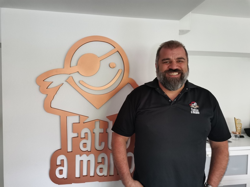 Κάπου εκεί ήρθε και η ιδέα του ονόματος «Fatto a mano» που στα ιταλικά θα πει «φτιαγμένο με το χέρι». Όσο για το logo διάλεξε έναν πειρατής (να συμβολίζει όλα τα ταξίδια που τον έφεραν σε αυτή την απόφαση) πάνω σε μια μπάλα παγωτό που χαμογελάει.