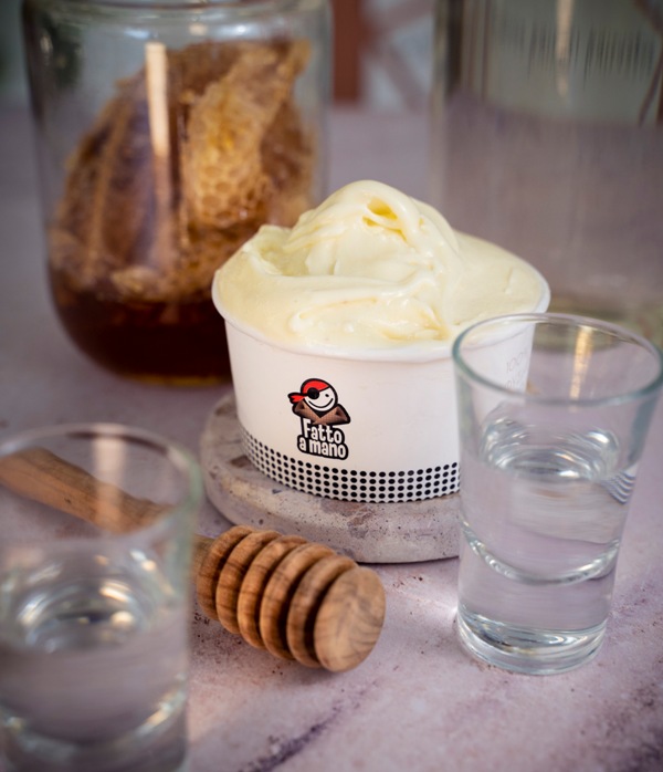 Παγωτό ρακόμελο με κρητική ρακί και θυμαρίσιο μέλι, παγωτό ρυζόγαλο, παγωτό μπουγάτσα, παγωτό τσουρέκι, παγωτό ανθότυρο και θυμαρίσιο μέλι, παγωτό με λουκούμι και φιστίκι αιγίνης κ.α.