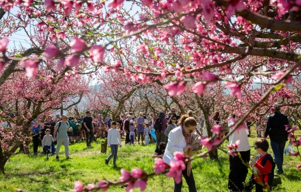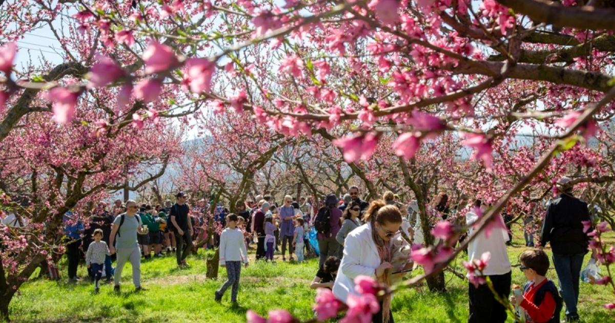 Έλληνες, κυρίως από την Κεντρική και Βόρεια Ελλάδα, αλλά και ξένοι επισκέπτες, δράττουν και φέτος της ευκαιρίας να δραπετεύσουν από την καθημερινότητά τους και να γίνουν και αυτοί έστω για λίγο, μέρος του ροζ πίνακα που δημιουργεί η μαγεία της φύσης στην περιοχή, με τις ανθισμένες ροδακινιές να εκτείνονται σε περισσότερα από 170.000 στρέμματα.