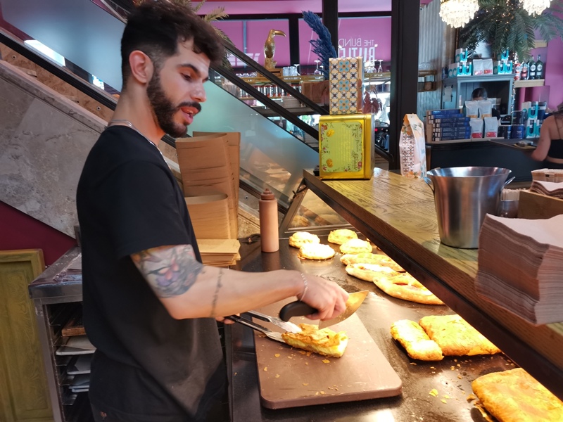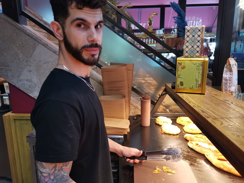 Ο έτερος υπεύθυνος του Blind Butler Κώστας Φλαμπούρης μας μίλησε την στιγμή που ετοίμαζε μια μπουγάτσα με κρέμα ρίχνοντας από πάνω ζεστή πραλίνα φουντουκιού. «Πολλοί απολαμβάνουν το πρωινό τους εδώ. Εμένα με βλέπετε τώρα να ετοιμάζομαι να σερβίρω μια ζεστή μπουγάτσα με κρέμα στην οποία θα ρίξω ζεστή πραλίνα φουντουκιού. Βέβαια έχουμε και άλλα πιάτα που μπορεί κανείς να απολαύσει όλες τις ώρες της ημέρας. Δεν είναι τυχαίο ότι το μαγαζί είναι σημείο συνάντησης για πολύ κόσμο».