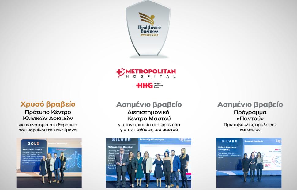 Με τρεις σημαντικές διακρίσεις στα Healthcare Business Awards 2024 τιμήθηκε ο Όμιλος HHG (Hellenic Healthcare Group) επιβεβαιώνοντας την ηγετική του θέση στην καινοτομία και στην κοινωνική προσφορά. Συγκεκριμένα, ο Όμιλος HHG διακρίθηκε με: