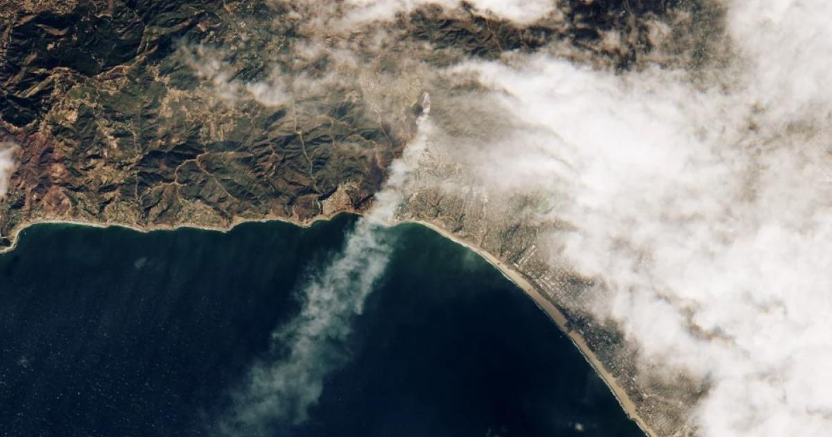 Οι δορυφορικές εικόνες που τράβηξε η NASA δείχνουν τις ανεξέλεγκτες πυρκαγιές του Λος Άντζελες από το διάστημα.