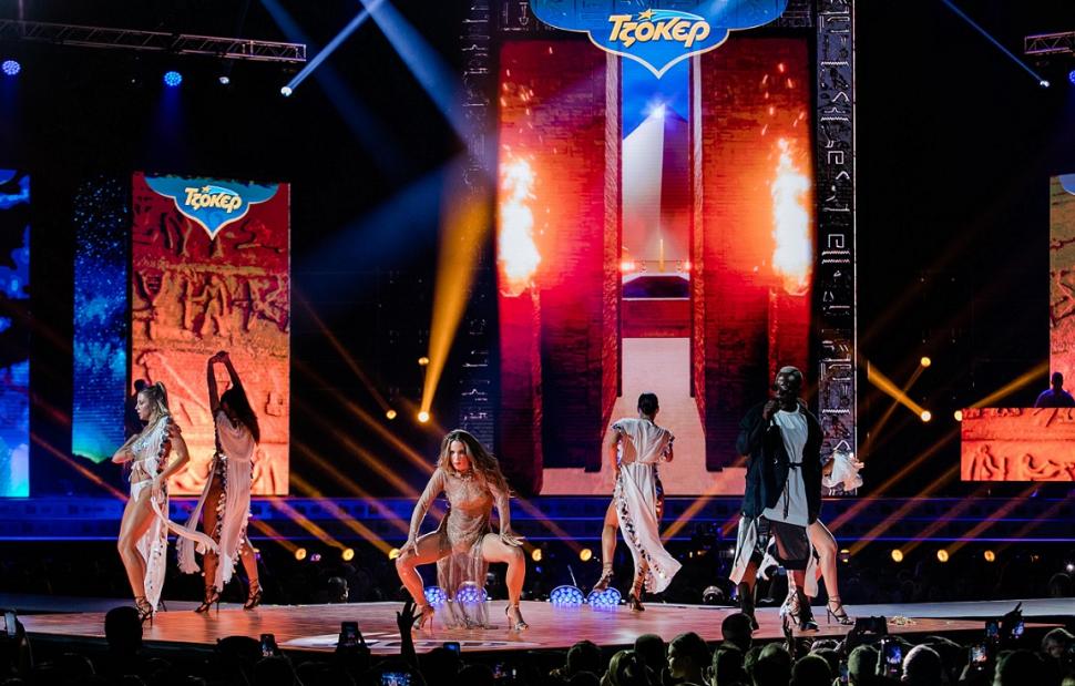 Η Κατερίνα Στικούδη ανέβηκε στη σκηνή μαζί με τον KG, τον Greg και τους Vegas και ερμήνευσε το Yalla & Tous Ponaei, σε ένα ιδιαίτερο ethnic σκηνικό, ξεσηκώνοντας το κοινό.