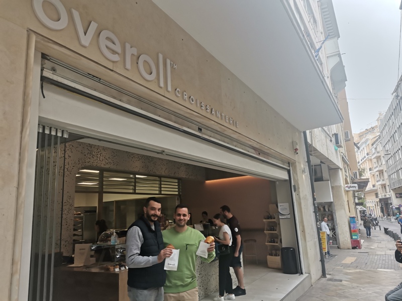 Το croissant του Overoll είναι απολαυστικά μυρωδάτο, είναι τραγανό εξωτερικά, τρυφερό και αφράτο εσωτερικά, είναι αέρινο και δεν θα δείτε να αφήνει λάδι στο περιτύλιγμα.