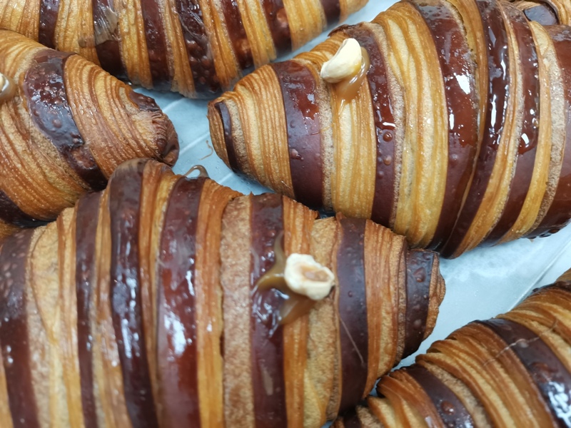 «Το croissant βουτύρου είναι αυτό που δοκιμάζει ο κόσμος στο μαγαζί μας, κι εκεί βλέπει έντονα τη διαφορά από τα αντίστοιχα που έχει συνηθίσει. Το croissant νουτέλα είναι ανάρπαστος κωδικός (στα παιδάκια ειδικά) και από αλμυρά το croissant Ham-cheese (με ζαμπόν και γραβιέρα Κρήτης) και αντίστοιχα croissant με σπανάκι, με πράσο, κρεμυδάκι κ.α», επισημαίνει ο κ. Γιάννης Κίκιρας.