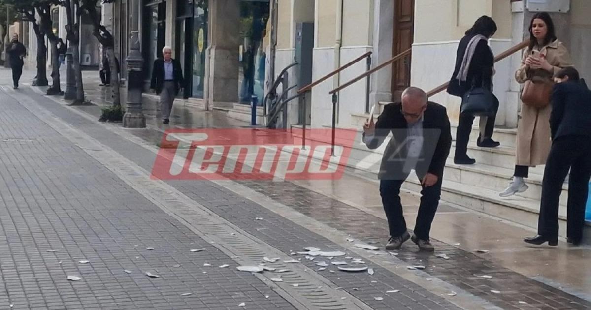 Καταστηματάρχες βγαίνουν έξω από τα μαγαζιά τους και πετούν αντικείμενα στους δρόμους, όπως: