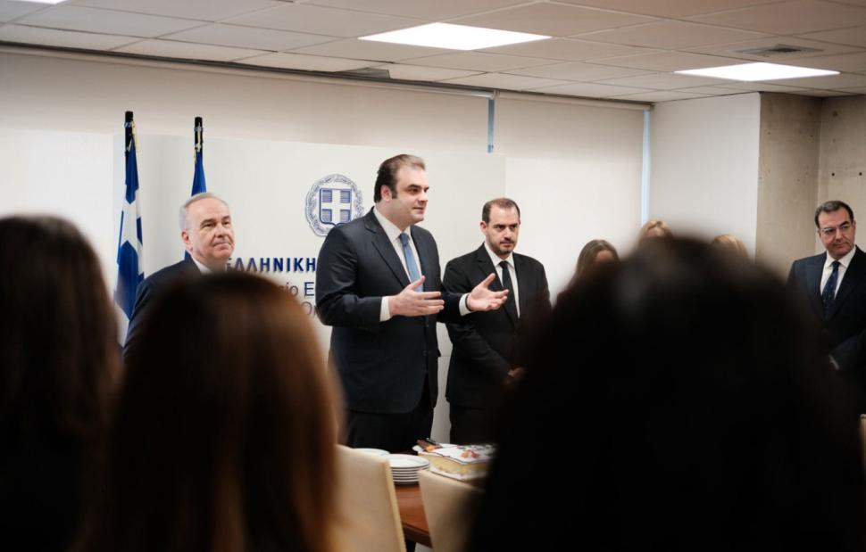 Στον χαιρετισμό του, ο Κυριάκος Πιερρακάκης ευχήθηκε χρόνια πολλά σε όλες και όλους και έκανε έναν σύντομο αλλά πυκνό απολογισμό της χρονιάς που πέρασε, σημειώνοντας: