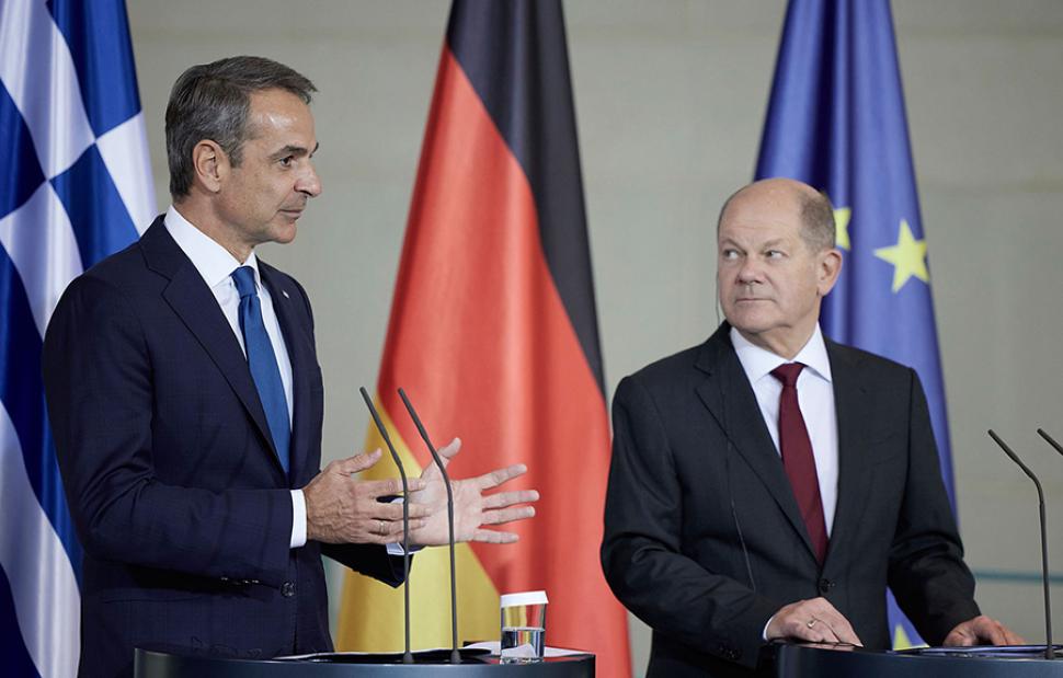Prime Minister Kyriakos Mitsotakis, in joint statements with German Chancellor Olaf Scholz after their meeting in Berlin on Tuesday, reaffirmed the significant improvement in Greek-German relations on all levels.
